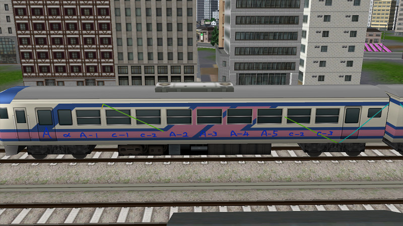 2014年04月18日 20:58 A列車で行こう9 没ネタ 探し物が見つかりました。 165系とやらの車両です。 個人的にはこの車両と6つ子が「近からず遠からず」の関係に見えます。 という前提の下で、なぜ「あの塗り替え」が出てこないのだろう?と前々から気になっていました。 なので上記のように斜線だけではなく色々なマーキングを施してじっくり調べてみる事にしました。 1両目。 あっ( 2両目。 うわぁ((( 3両目。 ・・・・・・。 使いまわし方が不可解すぎる! そもそも「B」のドアに至っては使われてすらいないじゃん! そりゃあ「あの塗り替え」が出てこなくても当然だわ。 と、独り納得した没ネタでした。 [0回] スポンサーリンク 2014年04月18日 20:58 A列車で行こう9 0件