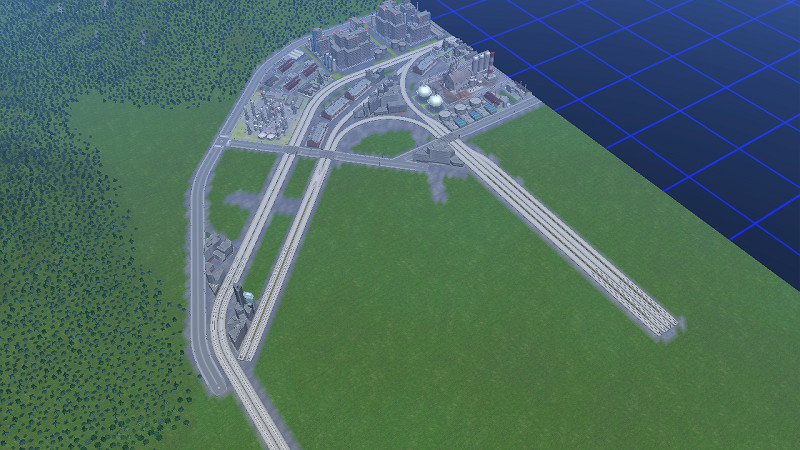 2013年10月10日 23:18 A列車で行こう9 境界線 マップ外との境界付近をどのように作り上げるか、いつも悩みます。 車窓モードやらプレビューモードを使っているとき、線路の沿線風景の移り変わりからマップ外を「想像」できるのは良い出来だと思うのですが、個人的にマップ外を「視認」できてしまうのはあまり美しくないと思うのです。 せっかく空想に浸っているのに、マップ外を視認することで「あぁ、これはゲームなんだ」と現実に引き戻されてしまう、みたいな。 そうすると必然的にマップ外直前は直線ではなくカーブになり、線路沿いの建物はなるべく背の高い建物になってしまうという。 あるいは山でマップ外を「隠す」か、大海原にしてしまうか。 今回の作り直しマップでは貨物用のデルタ線を作る必要があるので、境界付近は工業地帯の端をイメージして建物を並べようと考えています。 マップ外(冒頭画像での右側)には、もっと広大な工業地帯が広がっている・・・みたいな設定ですね。 「直通」という名のコラボを他作者様と行う場合、こういった設定は往々にして破綻してしまうものですが、この作り直しマップにおいてはそれを考えずに済むので非常に気が楽です。 [0回] スポンサーリンク 2013年10月10日 23:18 A列車で行こう9 0件