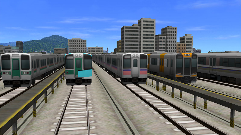2013年11月18日 23:59 A列車で行こう9 神経衰弱 今日からは作り直しマップの建物植えやら地形造成やらダイヤ検討やら。 その中のダイヤ検討に関するお話。 作り直しマップに小岩井電鉄を友情出演させる件は前々回の記事で言及した通りなのですが。 この路線のダイヤが面白いほどスパスパと決まりまして。 現状で5本/hまで確定しています。 凄い! やれば出来るじゃないか俺! ま、なんでこっちの路線がすんなり組めて、JRに当たるメイン路線が1年半だか2年だかかかるほど組みあがらないかと言えば、単に「ラッシュアワーを作ったか否か」の違いですね。 違うんだよ!俺だってほんとは作るつもり無かったんだよ!ほんとは! だけどカクカクシカジカの理由で1日2回、10分ずらす必要が出たからなんだよ!(白目 話は戻って小岩井電鉄。 1時間に5本は確定したのですが。 内訳が 特急:E233オレンジ(120km/h) 急行:阪神1000系(90km/h)※作り直しマップ内での通過駅は2駅&途中から9駅連続停車 普通:209系八高線塗装(80km/h) この3つに加えて 特急:110km/hの何か 普通:80~90km/h程度の何か(車庫の都合上8両以下) この2つが、路線の途中に設ける分岐駅から新たに加わる事となりました。 新たに加わるということは、新たにどの車両を使うか考えねばならないわけで・・・。 速度や塗装(塗り替えも視野に入れる)を考慮し、更に既存の種別・車両とのバランスもあわせれば、普通列車の車種候補としては701系各色・719系・名鉄3500系程度しかない・・・というのも前々回の記事で言及した通りです。 特急に至っては「110km/h出す」事ができて、既存のE233オレンジに合わせて10両にするなら117系しか候補が残っていないのですが、まぁそれは今回はひとまず置いときましょうよ(ぇ 一応、普通列車については817系にも一瞬惹かれたのですが、 これ、絶対下手に触っちゃいけないタイプでしょ。 もうね、tgaファイルを見る前に、ある程度予測できるようになってきましたよ(ぇ 正直なところ、これを見て抽出すること自体をやめたので「予測」でしかないんですけど← で、そうすると701系か719系、あるいは名鉄3500系が候補となるわけですが・・・ そうだった。 そういや作り直し「前」のマップのときに、701系仙台色でこんな事を考えていたんだった。 すっかり忘れてました。 さすがにコーポレートカラーをオレンジと考えているところでこいつを走らせるわけにはいかん&前面の作成がとんでもなくめんどくさいと気づいて放置したくらいなので、じゃあデフォルトのままで使うのか、何か別の車両へと塗り替えるのか・・・とじっくり凝視していたときに。 やまぢさん、気づいちゃったんです。 こいつらの見た目って似てません? あ、一番右は関係ないっすよ? ただ単に並べて置く場所がJR側の車庫しかなかったので、そっちで並べただけなんで← 側面を見ても、変な塗り替え途中の1つはともかく、この4つってなんとなく似てません? 少なくとも、やまぢさんにはそう見えるみたいです。 ・・・これ何かフラグ立ったんじゃね?(棒 [0回] スポンサーリンク 2013年11月18日 23:59 A列車で行こう9 0件