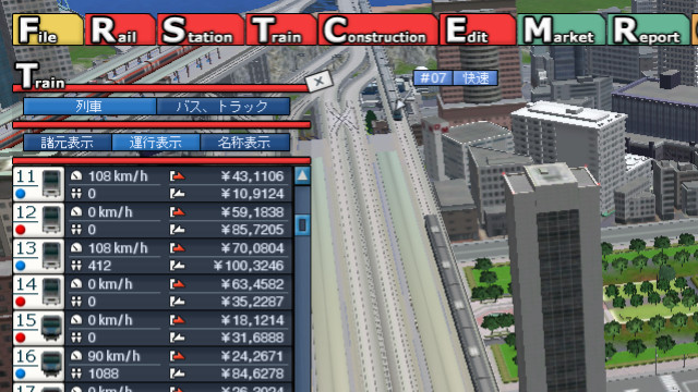 2014年01月21日 22:00 A列車で行こう9 誤算その2 せっかく出庫から10時まではうまくいったのに、11時台になった瞬間後ろから区間快速っぽい何か(←)に追突された各駅停車、の図。 この画像だと隣の線路(副本線)が空いているように見えますが、区間快速っぽい何かの後ろからやってくる当駅どまりが副本線に入線する予定で、さらにその後ろから来る特急までに本線を空けなくてはならないのでそんなに余裕がないのです。 特急を副本線に入れるのもなんだかなぁと思いますし、何も待避しないのに各駅停車を副本線に入れるのも、これまたなんだかなぁ・・・と。 ちなみにこの区間快速っぽい何かですが、反対方向では一度追い抜いた各駅停車に追いつかれて接続する、という何とも間抜けな状況が発生します。 動画で見せなきゃ問題ないよね( 最近は車両塗り替えも特に行わず、 建物を集中的に植えるわけでもなく、 ただ淡々とダイヤで四苦八苦する様子ばかりをここでお伝えしているので、はたして読者的にはどうなんだろう?と思うのですが。 動画化に向けた意地モチベーション維持やら「動画編集後記」的なものの展開を夢見て立ち上げたblogで、blog更新のために動画で使う予定のない車両塗り替えを行ったりするのも本末転倒な気がしますし、方向性に悩みつつある今日この頃です。 [0回] スポンサーリンク 2014年01月21日 22:00 A列車で行こう9 0件