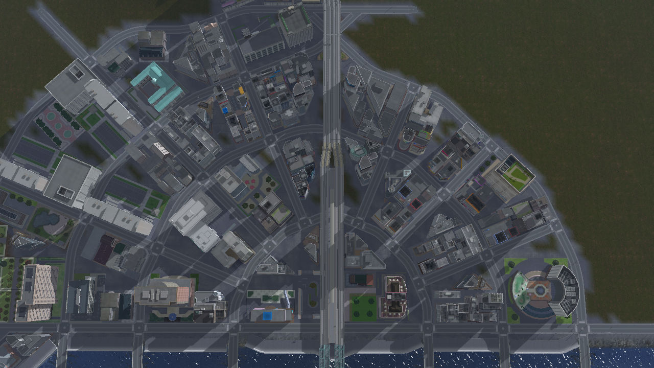 田園調布っぽい、駅を中心とした円形の計画都市。「放射状に道路を延ばせばいいんでしょ?」程度のノリで作り始めたところ、思ったよりも建物の配置で頭を悩まされる羽目に(白目)
